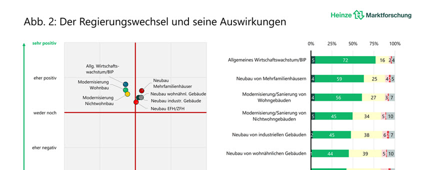 Das neue Heinze BaukonjunkturKlima zeigt, dass sich erste positive Rückmeldungen auf Vertriebs- und Marketingaktivitäten abzeichnen und vor allem in der Modernisierung wieder Fahrt aufgenommen wird. „Das alles ist nicht die Trendwende – aber vielleicht ihr Anfang“, resümiert Wagner.